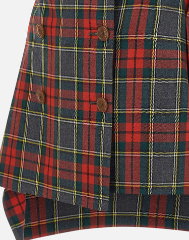 Vivienne Westwood "Marta kilt", wool, Scarlet tartan pattern, multicolor, inspirediconic Meghan model, homage to Scottish tradition, mini silhouette, medium waist, buttons on front, asymmetric hem, regular fit, lined, made in Italy