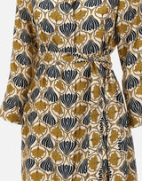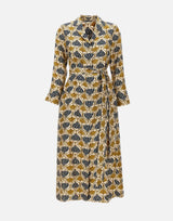 'S Max Mara "Albert" dress, multicolor, printed pure silk twill, long, caftan style, belt to highlight silhouette, straight cut, small lapels, set-in sleeves, shirt cuffs, slit at hem, hidden front fastening, inset pockets at sides, unlined, regular fit