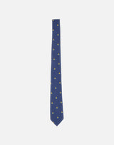 Cravatta "Multi Orb" Vivienne Westwood, realizzata in pura seta nella tonalità blu navy. Il design presenta un motivo jacquard con logo Orb ricamato in rilievo, simbolo distintivo della Maison britannica. Completata dal classico passante in tessuto sul retro, unisce raffinatezza sartoriale e identità contemporanea. Lunghezza: 140 cm. Larghezza: 8,5 cm. Made in Italy.