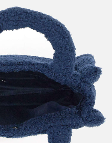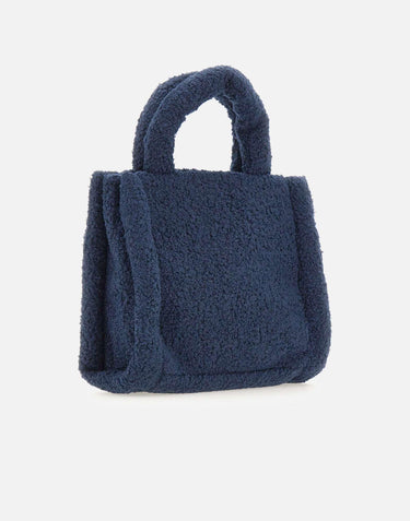 Colmar Originals "Currency" bag, crafted soft teddy-effect faux fur and presented in blue. Featuring a square, compact design, it comes with snap-button closure, internal pocket, and a front-applied Colmar Originals logo. Dimensions: width 26 cm, height 21 cm, depth 11 cm. A practical yet trendy accessory, perfect to complete casual winter looks.