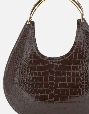 Medium Elisabetta Franchi "Daily" hobo bag dark brown burgundy in croc-embossed faux leather. Features a gold-tone jewel handle and bottom logo detail, with a single roomy compartment. Comes with fabric dust bag. Size: 35 x 39 cm.