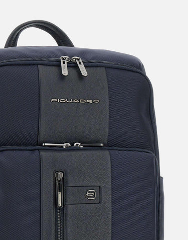 Piquadro travel backpack laptop holder 15,6'', blue, made of recycled fabric, anti-theft and RFID protectors, Easyjet compatible, two compartments, Shock Absorber, fixed Ipad Pro ® 12,9 holder, adjustable sternal strap, polyester lining, fixed handles, multi-pockets, sunglasses holder, tie-down strap, literage 27, measurements: height 45cm, length 36cm, depth 20cm. Weight 1371gr.