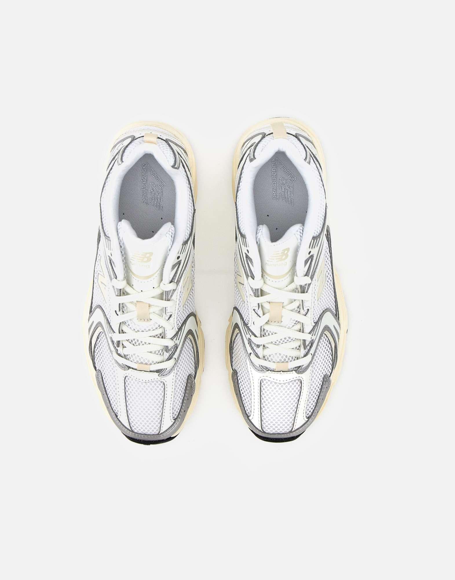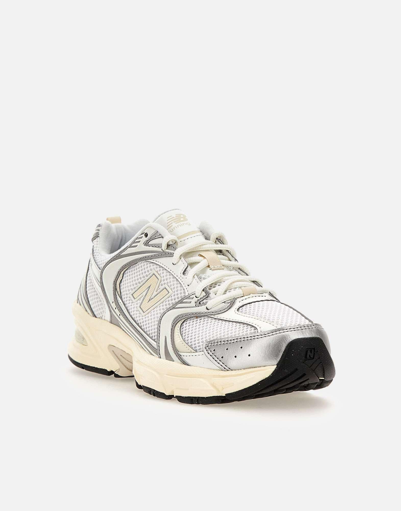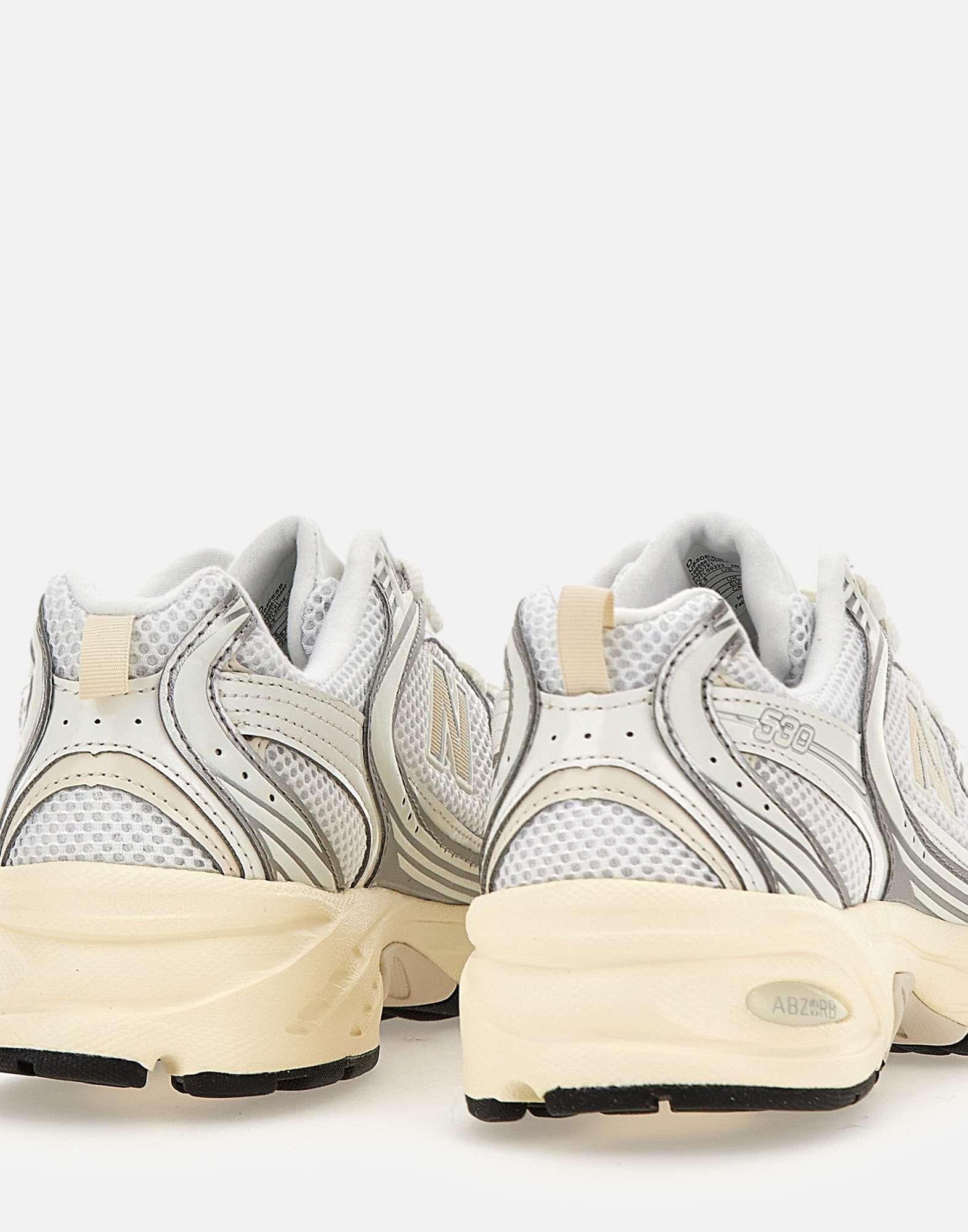 New Balance "U530" sneakers combine turn-of-the-millennium aesthetics with the reliability of a long-distance running shoe. They feature a segmented ABZORB midsole, white and silver colors, a mesh upper and synthetic lining, iconic N logo on side, a mesh texture, silver inserts, tonal laces, a pull tab on back, and a rubber outsole. They run small, so order a half size larger. US size 6.5" corresponds to EU/IT 39.5". Convert your usual size using conversion table. UNISEX FOOTWEAR USA