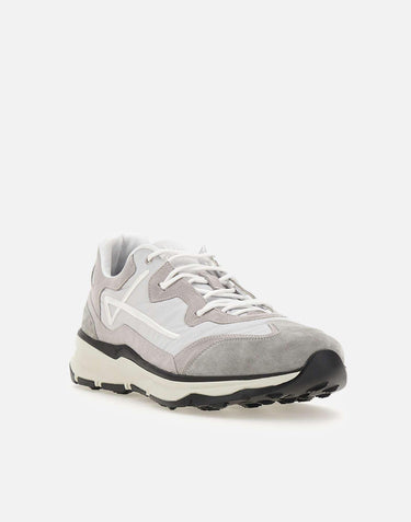 Mens Herno sneakers crafted from suede and technical fabric in shades of grey, combining refined style with everyday functionality. Thin round white laces add a clean finish, while embroidered side detailing lends subtle sophistication. The two-tone rubber sole in black and white ensures comfort and reliable grip. Comfortable, lightweight, and expertly made, these Made in Italy sneakers are the perfect balance of urban appeal and tailored elegance.