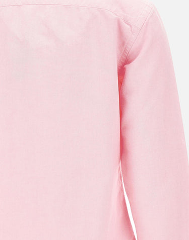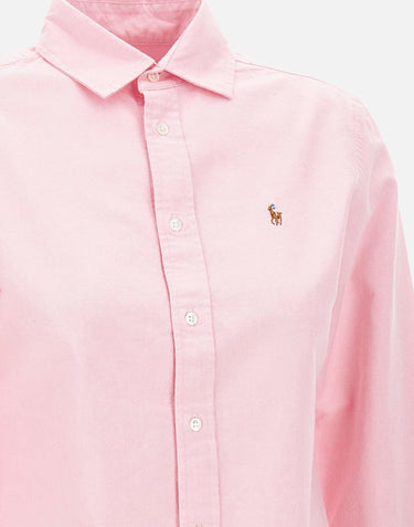 Polo Ralph Lauren "Bsr" women's cotton shirt, pink, classic collar, front closure with white mother-of-pearl effect buttons, long sleeves, iconic multicolor embroidered logo on chest, rounded line at hem, regular fit.
