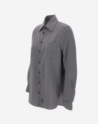 Seafarer "Tara" women's shirt gray pure wool canvas, with a relaxed fit. It features long sleeves, a classic collar, logo button closure, buttoned cuffs, and a patch chest pocket. Finished with a contrasting logo embroidery at the bottom and an asymmetrical hem with side slits. Made in Italy