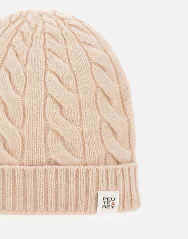 Peuterey wool "Annecy" cap, beige, cable knit, made in Italy, logo on the ribbed cuff, one size