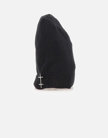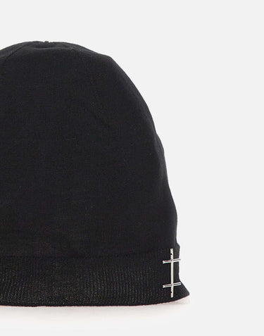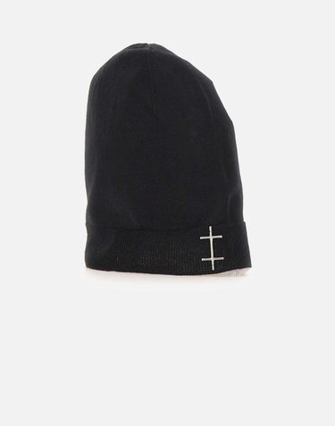 Heliot Emil wool "Fresnel beanie" black, with a mini metal logo, one size fits all