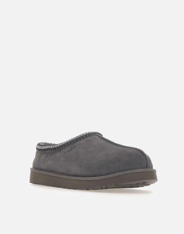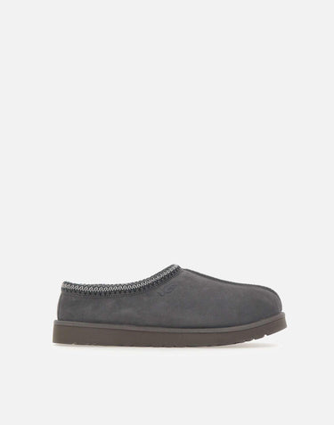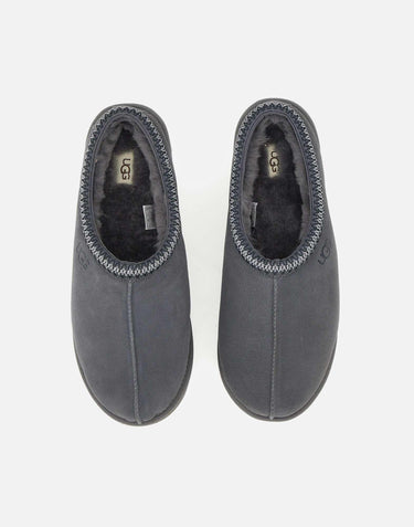 Mens Ugg "Tasman II" slippers, presented in smoke grey. The suede upper is enhanced by the signature UGGbraid trim, crafted from 100% recycled polyester fibers. Lined and cushioned with 17 mm sheepskin for warmth and softness, with foam insole and lightweight EVA outsole derived from sugarcane for comfort. Finished with embossed Ugg® logo. Regular fit. Size US 14 corresponds to EU/IT 48. Refer to the Ugg Unisex USA Footwear Size Chart to find your perfect fit.