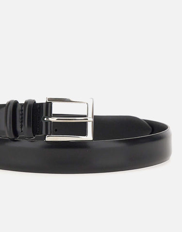 Orciani "Calf" men's leather belt, black, shiny silver pin buckle, length 108cm, width 3cm. Made in Italy.
