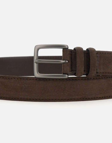 Orciani men's nubuck belt, dark brown, matt palladium-finish prong buckle, width 3 cm, made in Italy