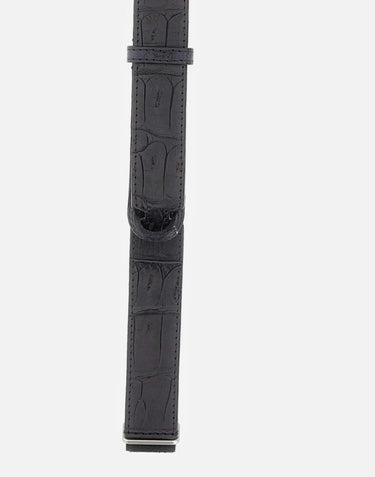 Orciani "Nobuckle Cocco Cosa suede" belt, black, crocodile and suede, without buckle, sliding ring matt nickel free finish, height 3cm, one size adjustable from size 42 to size 56, made in Italy