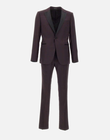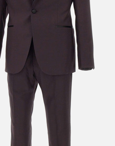 Emporio Armani two-piece wool blend and satin profile suit, black, M-Line, Evening Collection.