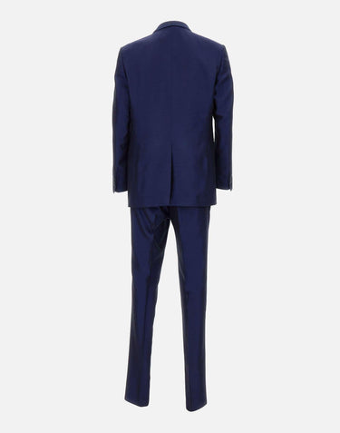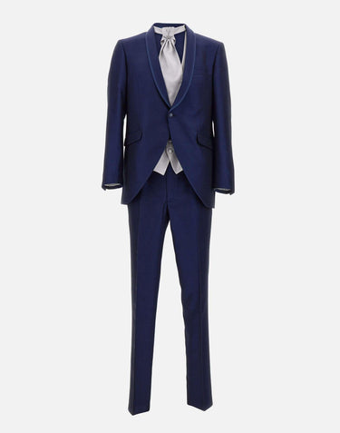 Carlo Pignatelli three-piece formal men's cool wool blend suit, iridescent blue color.