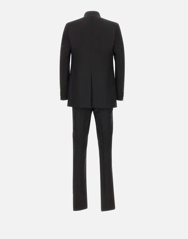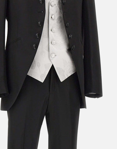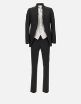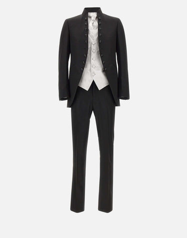 Three-piece formal suit with Carlo Pignatelli accessories wool blend, black. Drop MI.
