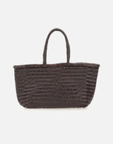 Borsa a mano Dragon Diffusion "Bamboo Triple Jump Big" in pelle di vitello di bufalo colore testa di moro, intrecciata a mano con iconica trama diagonale a chevron. Modello sfoderato dalla silhouette ampia e capiente, completato da doppio manico superiore. Allinterno è cucito a mano il ciondolo anticato di San Cristoforo, simbolo di protezione per i viaggiatori. Inclusa dustbag in tessuto. Dimensioni: larghezza superiore 45 cm, inferiore 33 cm, altezza 24 cm, manici 17 cm.