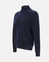 A perfect balance of style and comfort, this dark blue Gran Sasso men's cycling turtleneck is crafted from a premium blend of wool and cashmere, with a small percentage of viscose for extra softness and excellent thermal properties. The design features a wraparound high collar, long sleeves, and ribbed cuffs and hem for a comfortable, refined fit. The regular fit makes it versatile, ideal for wearing alone or under jackets and coats in the colder months. Carefully crafted in Italy, it's a quality men's wardrobe essential.