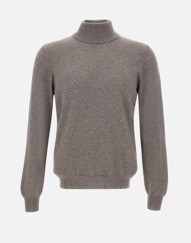 A perfect balance of style and comfort, this greige Gran Sasso men's cycling turtleneck is crafted from a premium blend of wool and cashmere, with a small percentage of viscose for extra softness and excellent thermal properties. The design features a wraparound high collar, long sleeves, and ribbed cuffs and hem for a comfortable, refined fit. The regular fit makes it versatile, ideal for wearing alone or under jackets and coats in the colder months. Carefully crafted in Italy, it's a quality men's wardrobe essential.