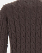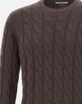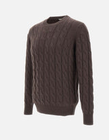 Maglia uomo Kangra in pregiato cashmere color cioccolato, caratterizzata da una raffinata lavorazione a maxi trecce. Modello girocollo con maniche lunghe e bordi a costine su collo, polsini e fondo, che ne assicurano comfort e tenuta della forma. Vestibilità regular. Made in Italy, ideale per completare look casual o eleganti con un tocco di esclusività.