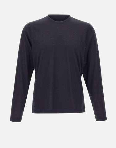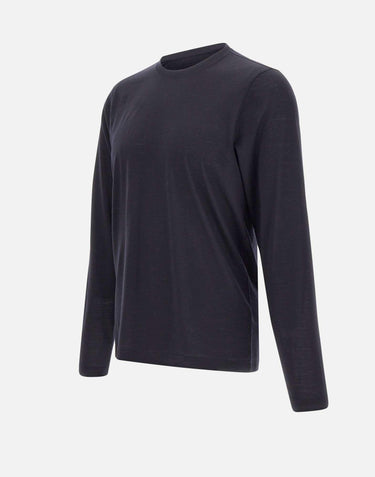 Gran Sasso men's athleisure sweater, crafted from cool midnight blue wool with an H2Dry treatment, making it highly breathable and comfortable. The design features a crew neck, long sleeves, and clean lines, perfect for casual and functional elegance. Regular fit. Made in Italy.