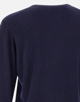 Maglia Della Ciana Cashmere realizzata in pregiato misto lana e cashmere, colore blu navy, finezza 12, dal tocco morbido e leggero. Modello girocollo con maniche lunghe, bordi a costine e vestibilità regular. Un capo essenziale e raffinato, perfetto per look casual o sotto giacca. Made in Italy.