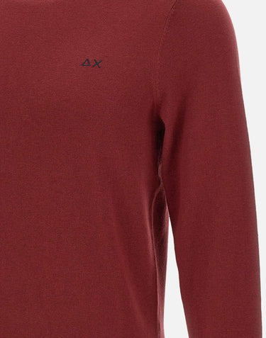 Sun68 men's wool and cotton sweater in burgundy with an embroidered logo on the chest. The design is enhanced by a contrasting color on the crewneck and cuffs for a distinctive touch. Regular fit, perfect for a casual and comfortable look.