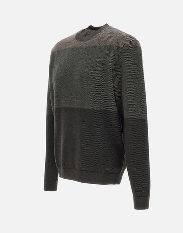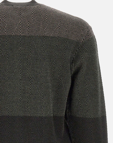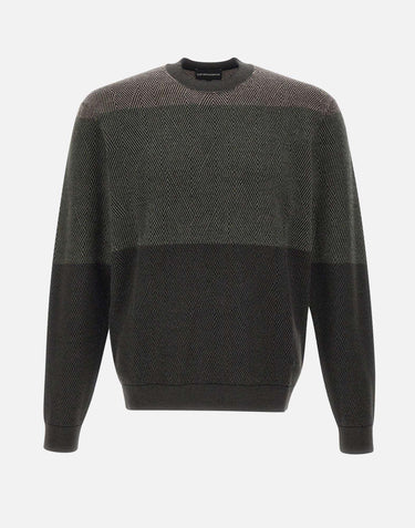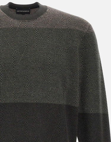 Emporio Armani men's sweater 16 gauge wool, micro jacquard optical diamond pattern, color block effect, long sleeves, crew neck, ribbed edges, regular fit.