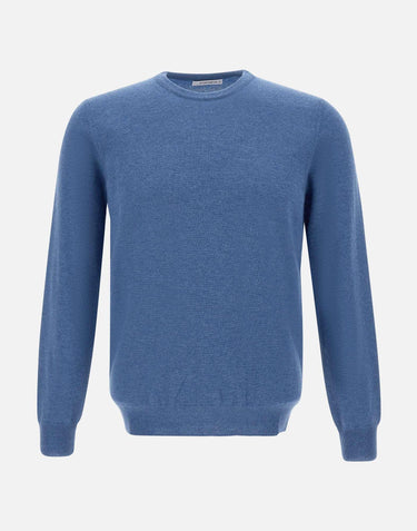 Kangra men's wool sweater, sugar paper blue, long sleeves, basic crew neck, ribbed edges, regular fit, made in Italy