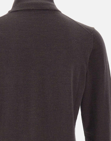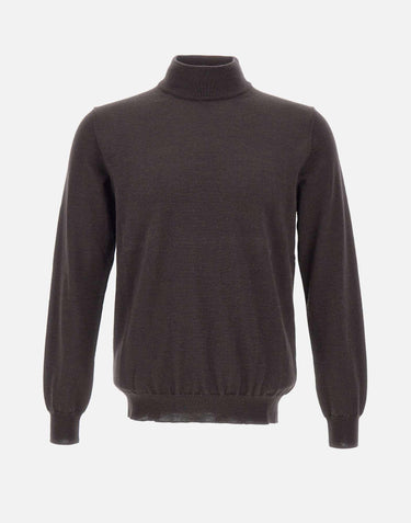 Kangra men's wool sweater, dark brown, mock neck, long sleeves, ribbed cuffs, regular fit, made in Italy