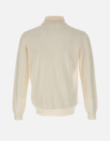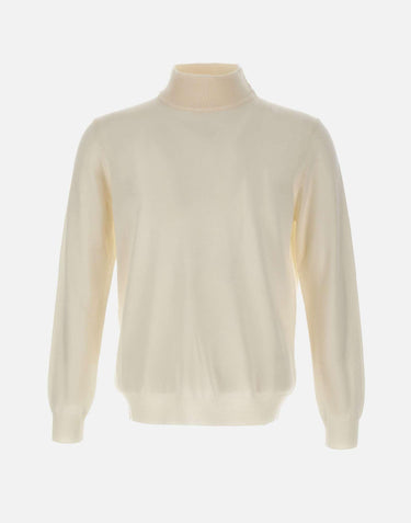 Kangra men's wool sweater, white color, mock neck, long sleeves, ribbed cuffs, regular fit, made in Italy