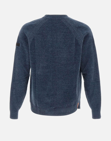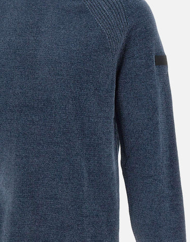 The RRD "Velvet Round Knit" sweater, crafted in a soft fabric, is designed to offer comfort and warmth during the winter season. Crafted in an elegant navy blue, it features ribbed details on the collar, cuffs, and hem, defining the fit and adding structure. The black rubber logo on the left sleeve adds a distinctive touch to the design.