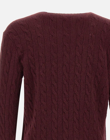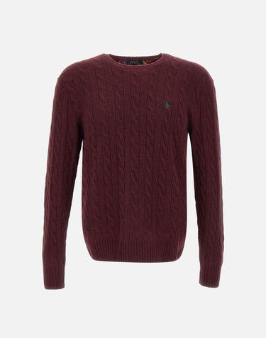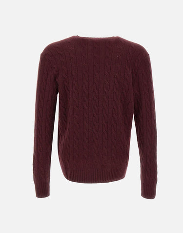 Polo Ralph Lauren "Classics" men’s pullover in burgundy wool and cashmere. Crew neck design with cable-knit pattern, ribbed trims and iconic embroidered pony logo at chest. Perfect for autumn and winter season. Regular fit.