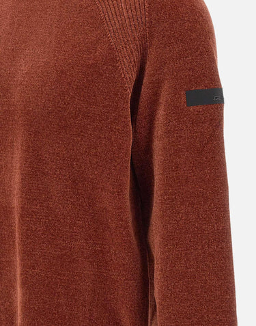 The RRD "Velvet Round Knit" sweater, crafted in a soft fabric, is designed to offer comfort and warmth during the winter season. Crafted in an elegant coral color, it features ribbed details on the collar, cuffs, and hem, defining the fit and adding structure. The black rubber logo on the left sleeve adds a distinctive touch to the design.