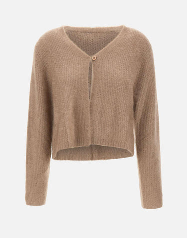 The Hemisphere pure cashmere cardigan, available in an elegant dove grey. Featuring long sleeves, a refined textured weave, and ribbed edges for structure. The front closure features a single mother-of-pearl logo button for a sophisticated touch. Regular fit, ideal for casual-chic looks and transitional layering.