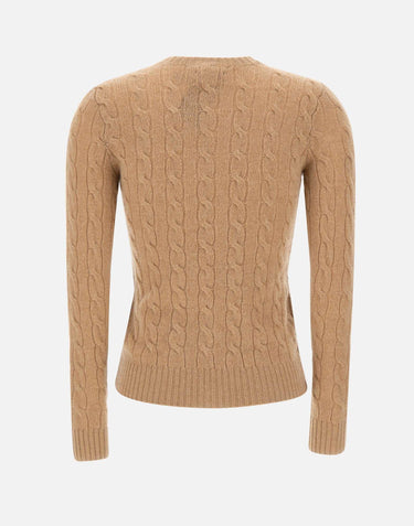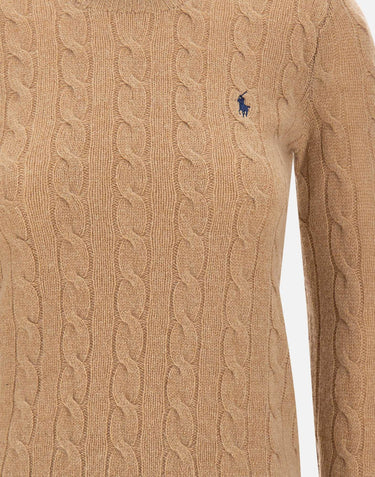 Polo Ralph Lauren women's "Classics" sweater in a wool and cashmere blend, available in cappuccino color. Featuring the iconic cable knit, it has a round neck, long sleeves, and ribbed edges. The embroidered Pony logo on chest adds a distinctive touch. Slim fit for an elegant and feminine look.