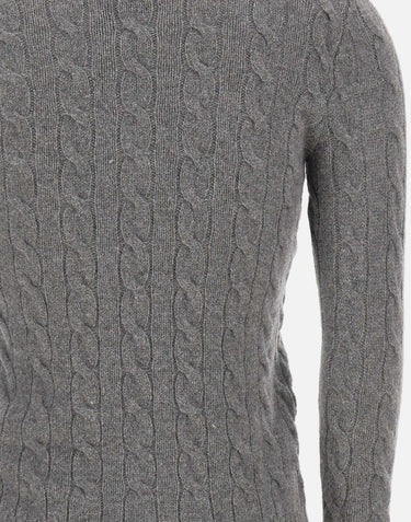 Polo Ralph Lauren women's "Classics" sweater in a wool and cashmere blend, available in grey. Featuring the iconic cable knit, it has a round neck, long sleeves, and ribbed edges. The embroidered Pony logo on the chest adds a distinctive touch. Slim fit for an elegant and feminine look.