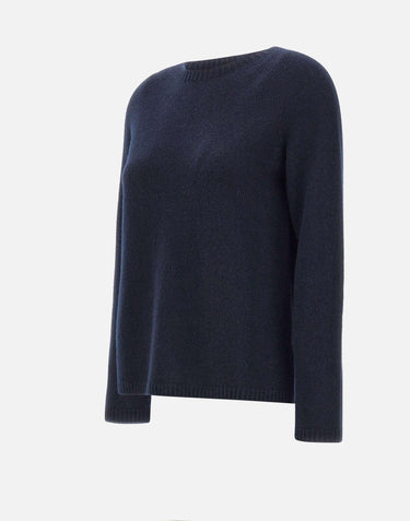 Max Mara's "Georg" sweater in navy blue wool and cashmere, crafted from a premium yarn and featuring a seamless construction for superior comfort. It features a crew neck, long sleeves, and ribbed edges for a simple, sophisticated look. Regular fit, perfect for elegant and everyday outfits. Made in Italy