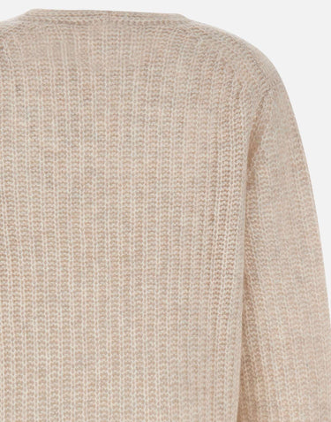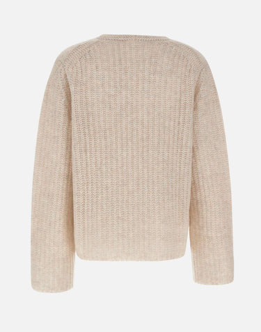 Women's Hemisphere pearl color crafted from a premium cotton and cashmere blend sweater. Featuring a V-neck, long sleeves, and a textured knit that adds a sophisticated touch to design. Wide cuffs and a straight fit complete piece, offering comfort and a relaxed fit.