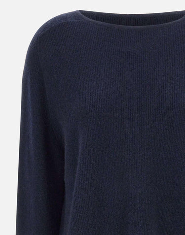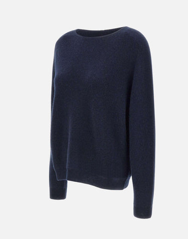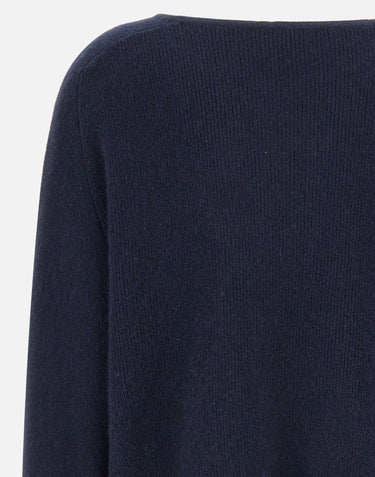 Women's Hemisphere pure cashmere sweater, available in a sophisticated midnight blue. Featuring a boat neckline that accentuates the décolleté, long sleeves, and minimal trims for a clean look. Relaxed fit for enveloping comfort and a timeless, elegant style.