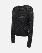 "Rally" sweater by Max Mara Studio, crafted from fine black wool knit. Featuring a crew neckline and long sleeves, it is embellished with all-over crystal appliqués for a refined, luminous effect. Straight hem and regular fit, perfect to elevate chic day-to-night outfits.