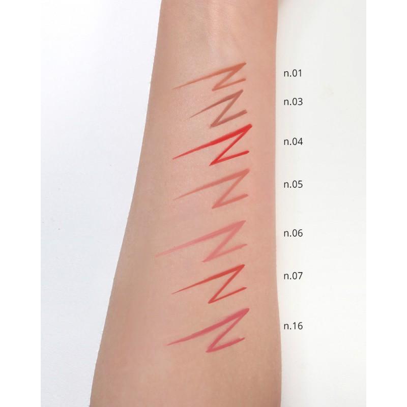 Indispensable for outlining the lip contour and hiding small defects, or can be used alone, instead of lipstick, to have kiss-proof lips. Characterized by a soft and comfortable texture.