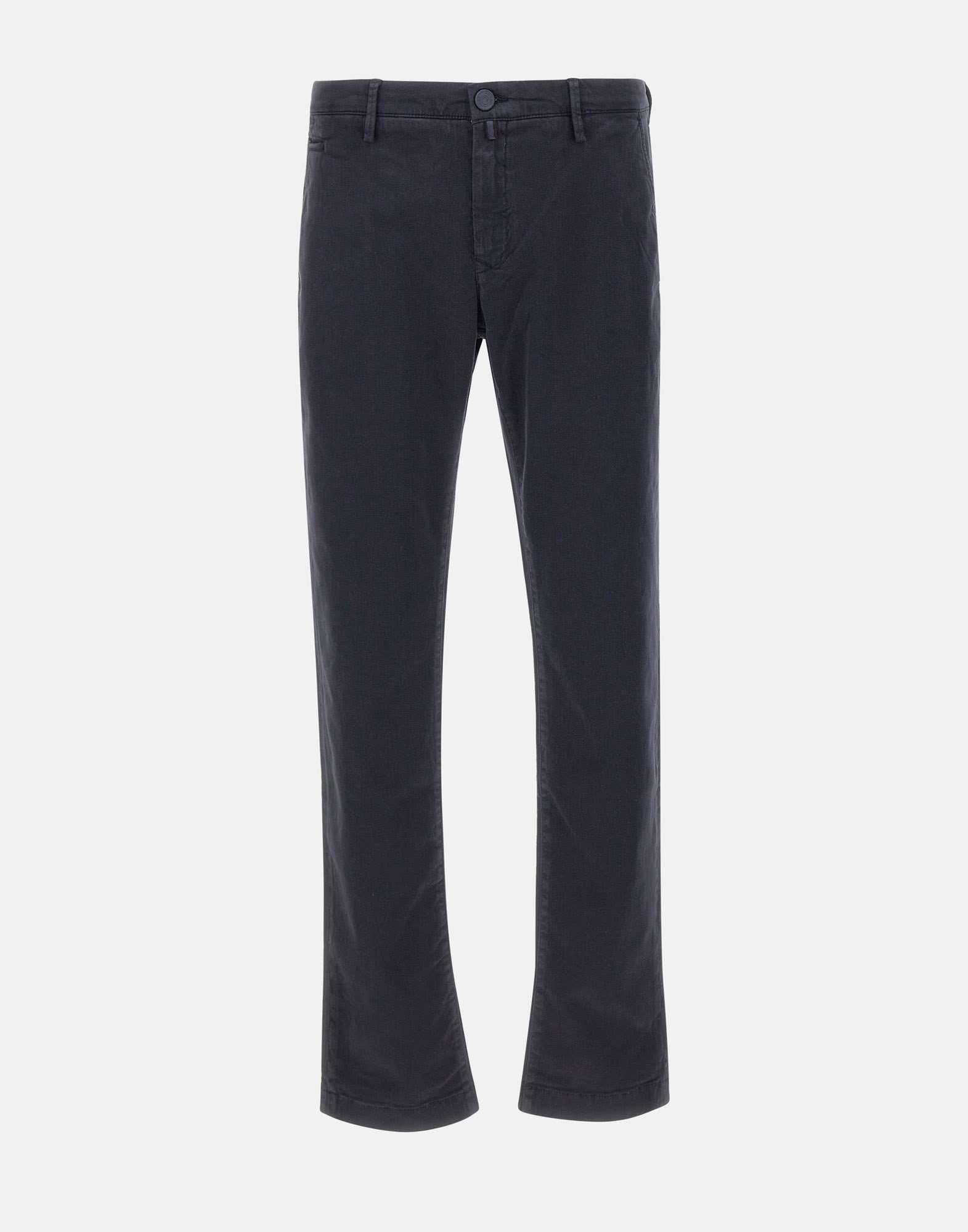 Jacob Cohen "Bobby" trousers, blue, stretch cotton and lyocell blend, ultra-comfortable to touch and to wear, five pockets, button and zip closure, back logo, belt loops, 18cm hem, slim fit. Made in Italy