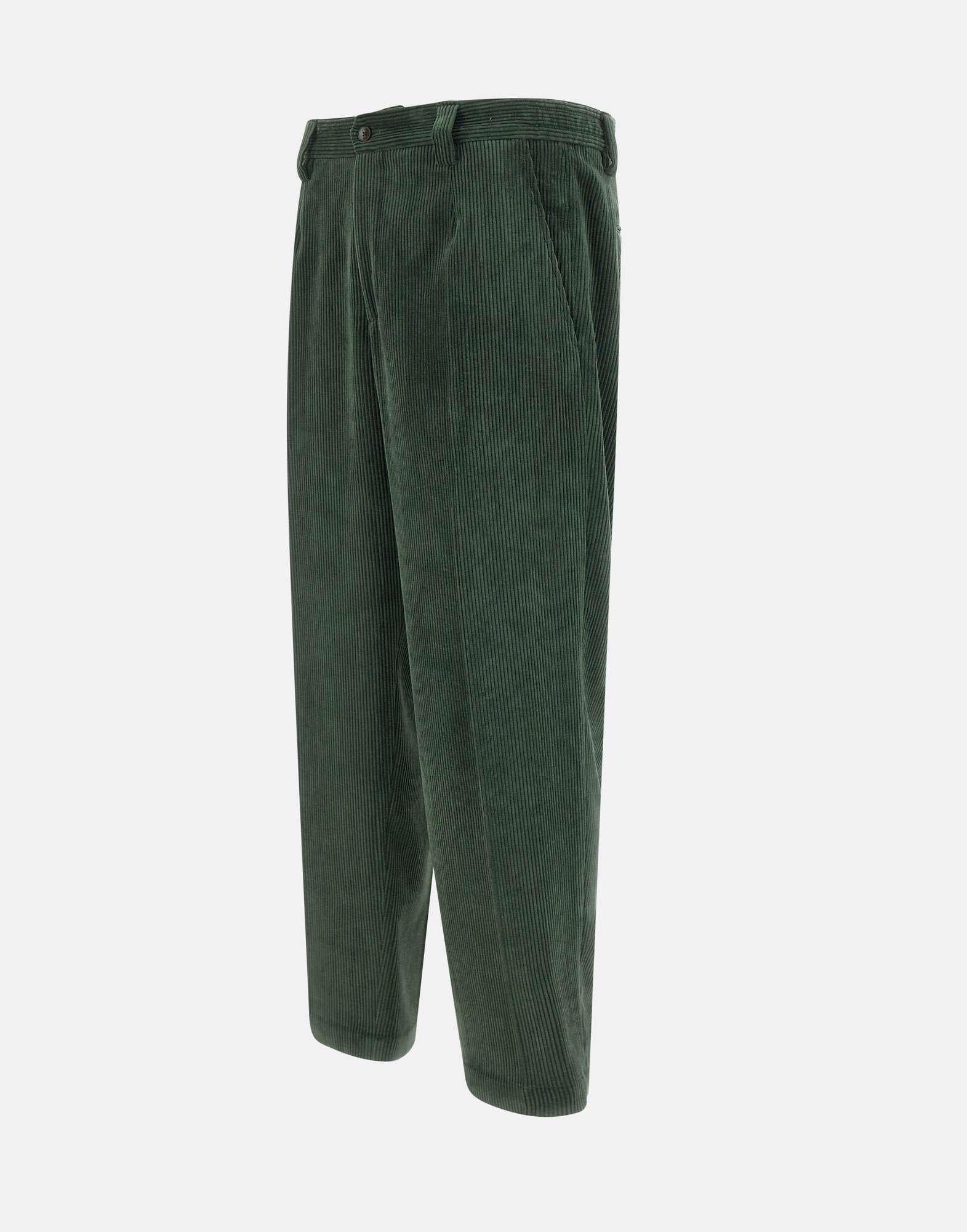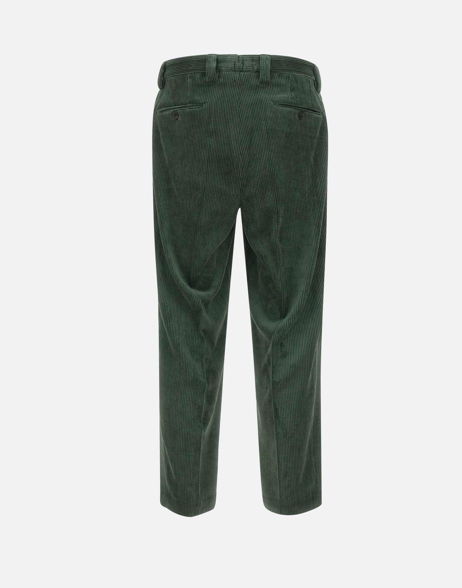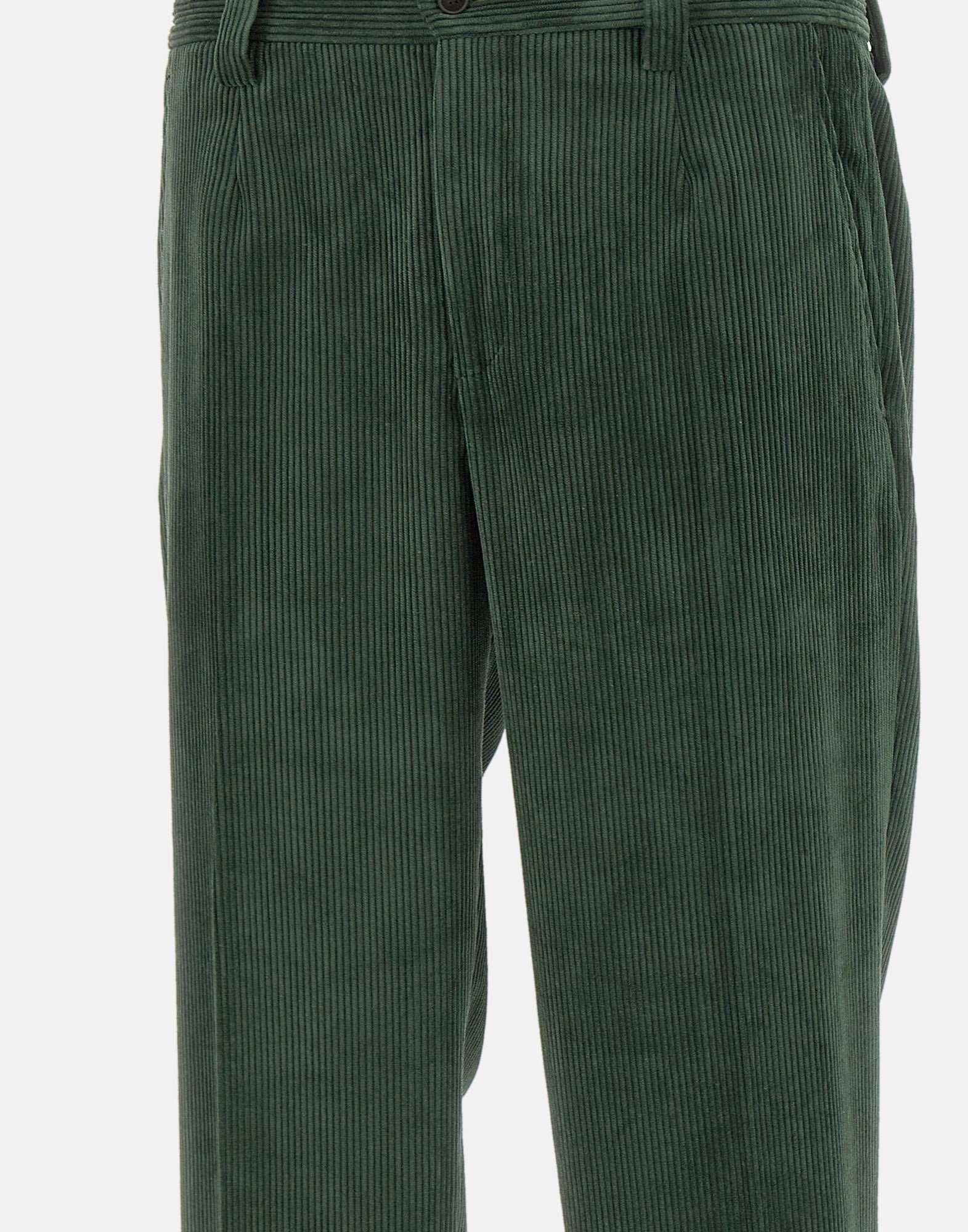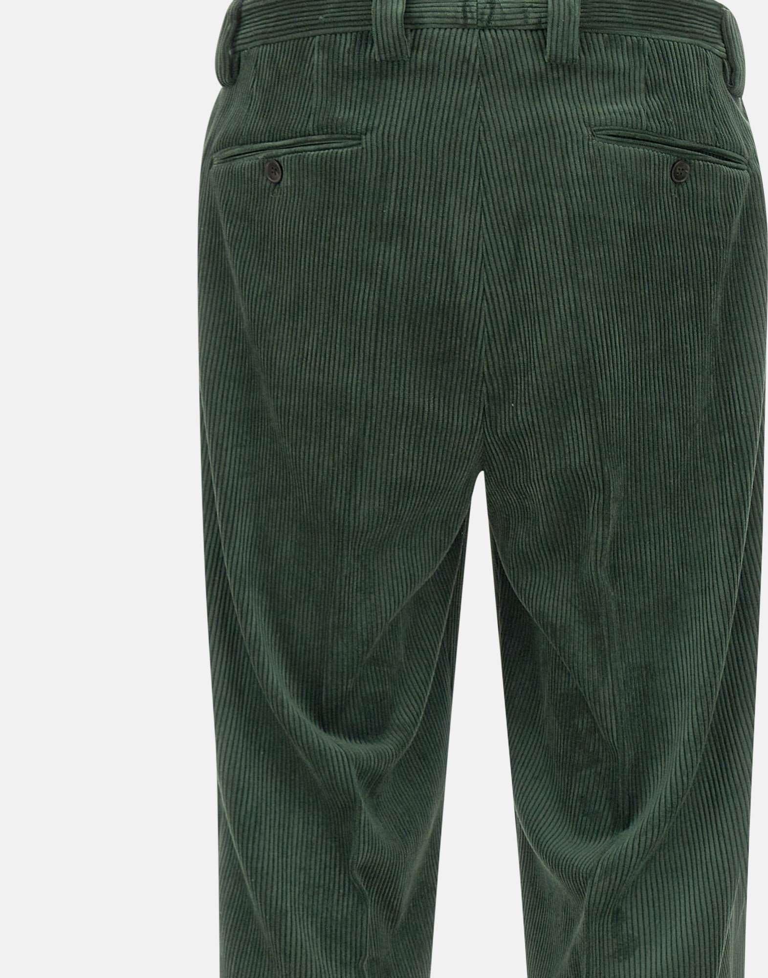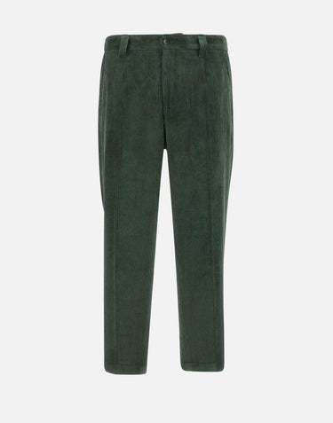 Briglia 1949 "Portofinos" men's trousers in green velvet, a piece that blends retro style and contemporary tailoring. Crafted with a soft, velvety texture, they feature a classic fit enhanced by thoughtful details. Featuring two side slit pockets and two rear welt pockets, they are finished with a zip and button closure and belt loops for a versatile and structured fit.