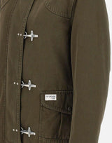 Iconico "4 Ganci Fay Archive" in color verde oliva, capo cult del DNA workwear Fay dagli anni Ottanta. Ispirato alle divise dei pompieri americani, è realizzato in resistente cover di cotone con imbottitura in ovatta e fodera trapuntata a motivo cipolla. Caratterizzato da colletto in velluto, dettagli in crosta e inconfondibile chiusura con quattro ganci in metallo e automatici nascosti. Completano il design le maxi tasche con patta e il taschino interno. Etichetta Fay Archive cucita sulla tasca sinistra. Made in Italy. Vestibilità comfort.