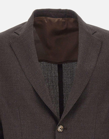 Barba men's pure wool blazer, chocolate brown, Easy Collection, collar with narrow lapels, two-button closure with logo, front pockets, buttoned cuffs, side vents on back for greater comfort, partially lined in viscose, inside pocket, slim fit. Made in Italy, it combines sartorial elegance and everyday practicality.