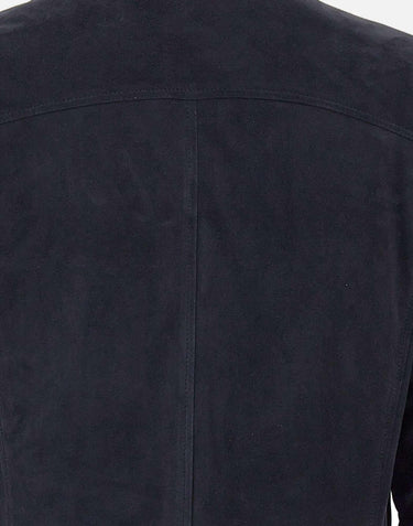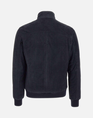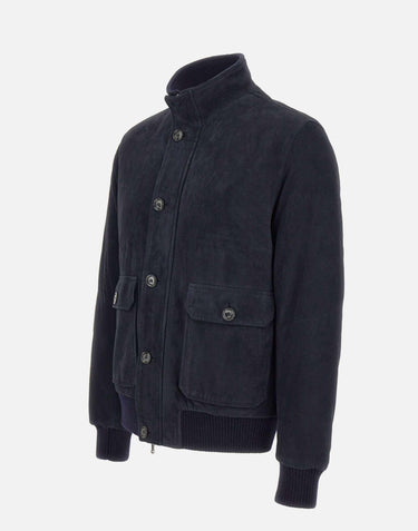 Barba men's "Lava" jacket crafted from premium, ultra-soft sheepskin in an elegant navy blue color. Ribbed collar and trims add comfort and a sporty touch. Double zip and logo button closure. Large front pockets with button closure. Lined and enriched with eco-friendly padding for warmth without sacrificing lightness. Regular fit, Made in Italy, an expression of uncompromising craftsmanship and quality.