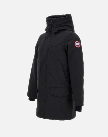 Canada Goose "Langford" mens parka, black, fixed hood, front zip and snap fastening, four pockets on the front two hand warmers and two with flap and button, iconic logo patch on sleeve, retractable knitted cuffs with CORDURA elastic profile for greater protection from cold, internal pocket, waterproof and windproof ideal for autumn and winter season. Each Canada Goose garment has a lifetime warranty against material defects throughout life of product itself.
