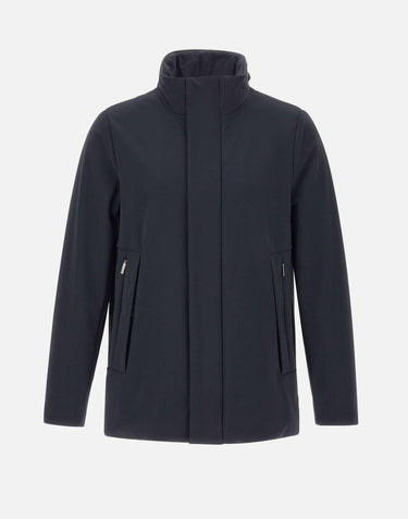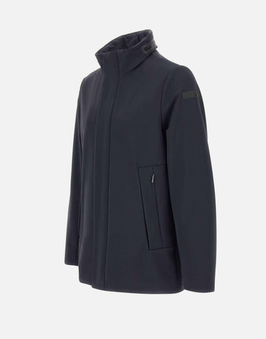 Men’s RRD "Surflex Winter Thermo Mdm Jkt", presented in blue and crafted from Stratofabric3 membrane fabric, waterproof and breathable. This mid-length winter outerwear stands out for ultra-matte look of exclusive Surflex and a fine velvet lining that ensures warmth and comfort. The design features a two-way zip fastening with metallic snap buttons, zip-concealed hood, side zip pockets, adjustable cuffs with snap button, and an internal pocket with invisible zip. Signature details include the double fluorescent orange piping with heart-shaped label “Made with love, designed in Tuscany” and black micro-injected logo on left sleeve. Regular fit.