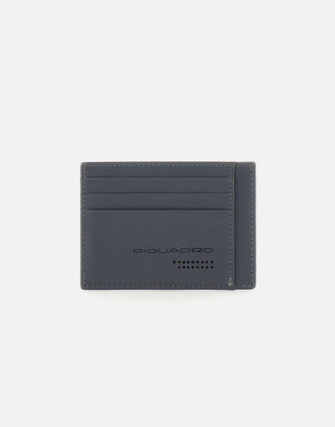 Piquadro leather card holder, grey colour, Rfid Protected, embossed front logo, multiple compartments for cards, measurements: height 8cm, length 11cm.
