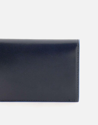 Piquadro wallet, blue, leather, front logo, multiple card slots, logo embossed inside. Height 11cm, length 7cm.